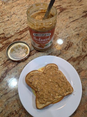 [This review was collected as part of a promotion.] This natural peanut butter made by a trusted brand is so comforting to feed my family. It's easily stirrable and tastes great on toast with a little honey added. It's slightly drier tasting than traditional peanut butter, but we love it!
