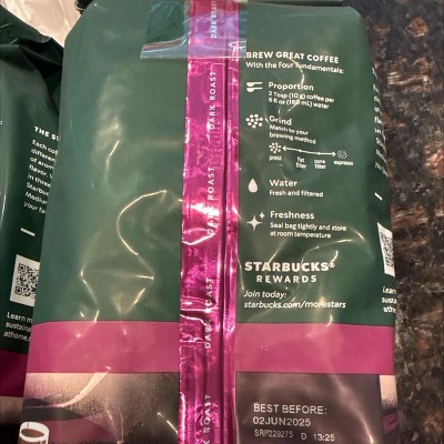 The bag I got smelled and tasted burnt. I attempted to brew it 4 different ways and each time, it was disgusting. I'm done with Starbucks.