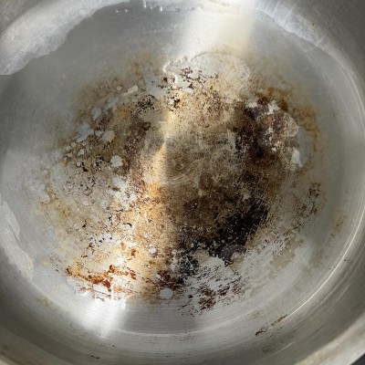 Polishes brass tray to like new and removes any stains from stainless steel pots. Definitely wear gloves/don't even attempt to use without protecting your hands.