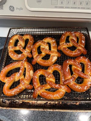 [This review was collected as part of a promotion.] These pretzels are incredibly soft. I microwaved them for a minute and then baked them for three minutes. When I ate them, I noticed that they were crispy on the outside and a bit salty, while the inside was very soft. I thoroughly enjoyed them.
