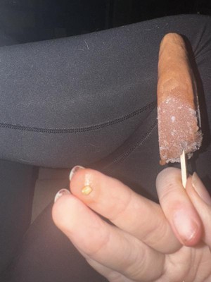 We opened a fudgsicle and it had not one, not two, but three popsicle sticks and a tooth pick in the fudgsicle! This makes me very fearful to eat any more. Clearly no quality control!