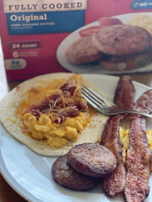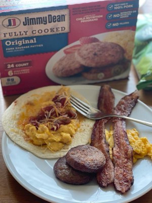 I love that the Jimmy Dean pork sausage patties are fully cooked. That makes them easy to prepare and most importantly fast especially when we are usually short on time. It's not the best sausage as nothing compare to fresh home made in my books but it's a great alternative. One thing that I dislike is the salt content but that's probably standard for prepared foods.