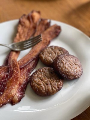 I got this for my husband who wanted easy breakfast options and its a go to now. We usually heat it up on the pan when cooking but have also tried the microwave, both come out great and its quick. Not too greasy and a good portion. The packaging has two sections so you can keep it fresh longer.