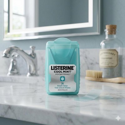 Listerine Cool Mint PocketPaks Portable Fresh Breath Strips - Cool Mint - 24-Strip Pack - 3 Pack: Paraben-Free, Phthalate-Free