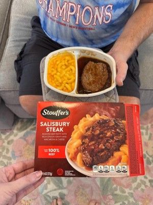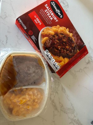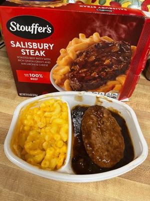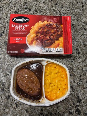 [This review was collected as part of a promotion.] Ive never had a Stouffers frozen meal before so I was excited to try this. I love Mac and cheese and Salisbury steak. Heating this was simple and easy as with any frozen TV dinner. Overall the taste was better then expected. The Salisbury steak was tender and juicy. The Mac and cheese tasted cheesy and creamy. Best of all, it smelled so good. Highly recommend this.