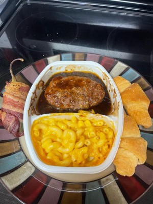 [This review was collected as part of a promotion.] I love these. The Salisbury steak is easy to cut through and the Mac and cheese mixed with the sauce from the steak is top tier. I love taking a bite with a piece of the steak and some of the Mac and cheese. The only issue is that I wish the Salisbury steak was bigger or that it has 2 of them, other than that I eat these like every other week if not every week, because that is how much I crave and like these.