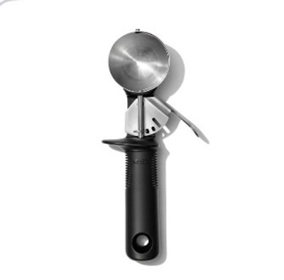 OXO Classic Swipe Ice Cream Scoop: Stainless Steel, Dishwasher-Safe, 8.3" Length, 4.25" Handle, Black