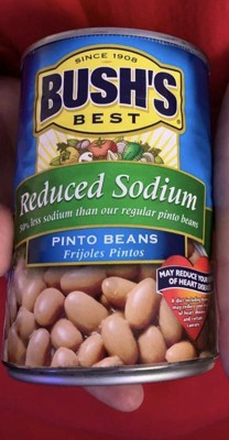 • Bush’s Reduced Sodium Pinto Beans are plump beans with a firm texture, hearty flavor and less sodium than our original Pinto Beans