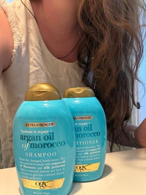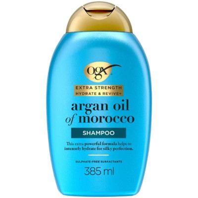 OGX Argan Oil of Morocco is a hydrating shampoo infused with argan oil that helps moisturize, add shine & smooth frizz. It has a pleasant scent, creamy lather, & leaves hair feeling soft & manageable, great for dry or damage hair.