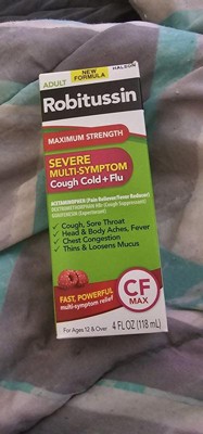 [This review was collected as part of a promotion.] I received this product for free in exchange for my honest review! My husband and daughter both tried the Robutussin Severe Multi-Symptom Maximum Strength Cold and Cough syrup when they were both feeling sick. My daughter took a little bit before she went to work one day and said it didn't make her tired and it helped with her head cold and it helped her feel a little better while she was at work. My husband used it for 3 days with his cold and he swears it's what helped him get better quicker. He loved that he was able to use some before heading to work as well and that it didn't leave him feeling tired and lethargic. He didn't care for the flavor however, he had to drink something after he would take some and he stated it left a bad aftertaste for about 5 minutes afterwards. I will probably buy this as an additional medicine to use during cold and cough season.