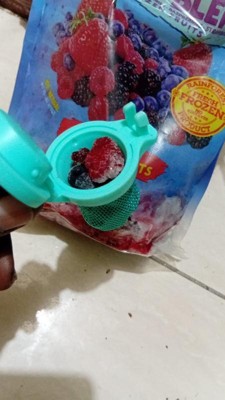 [This review was collected as part of a promotion.] I love the idea of this, but actually using it is a different story. I have tried multiple types of fruits/vegetables in this as well as ice chips and using it with food of any type ends up making a mess. I think it’s also a little bit too big/floppy and opening it is practically impossible to do without smashing your finger…. Cleaning is a nightmare….Even after soaking, food bits are difficult to remove from the mesh, especially along the seams and I worry that it’s not getting cleaned well enough. The best use I have found for it is putting small ice chips in it to soothe my teething baby’s gums. The ice chip made cleaning a lot more simple and it honestly the only way I can foresee using this as I spent way too much time trying to get it clean when using it with food. The idea is awesome, I just think maybe use something other than mesh.