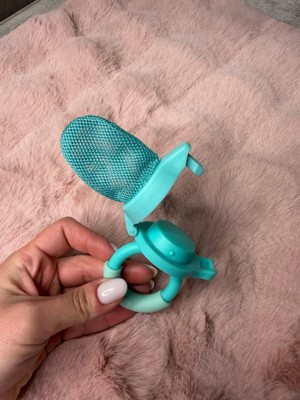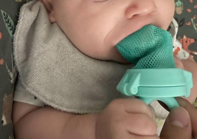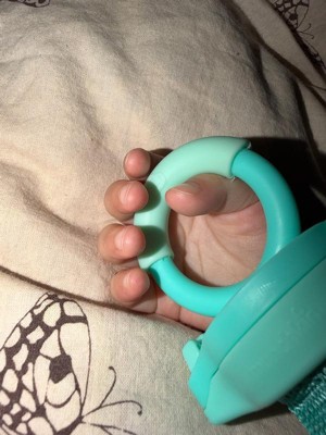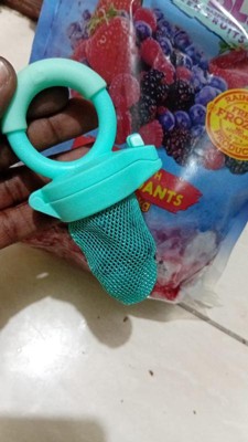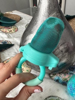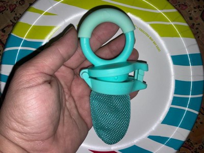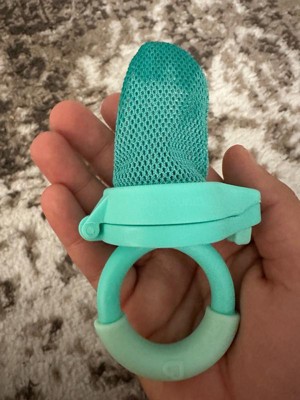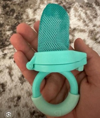 [This review was collected as part of a promotion.] My daughter absolutely loves this fresh food feeder. She currently teething and this has become her favorite thing to use. The soft mesh and handle make it easy for her to hold, and she happily keeps it in her mouth for long period, because it soothes her gums. Very portable size for infants. Quick wash with good amount of food it can hold.