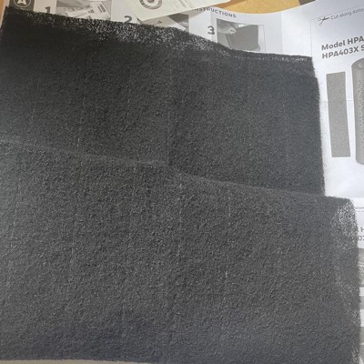 Pre-filter has these specks of black particles coming off when I unrolled it. The quality of this is suboptimal to the original. This pre-filter is see through and not as thick and rigid as the original that came with my HPA300. I’m not interested in cutting this to make it fit my unit. I will be returning this because of the poor quality of the pre-filter. The two filters in the box is fine. I prefer pre-cut filters, if that exists.