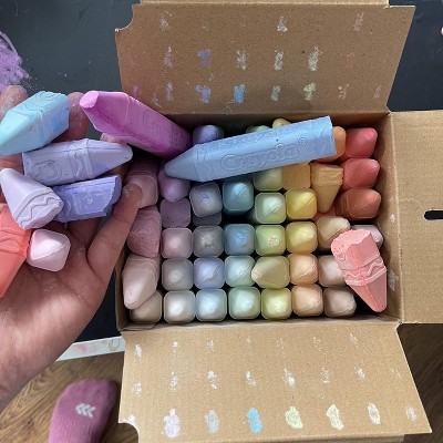 The box broke all over the inside of my order! Everything I ordered for my daughter was completely covered in chalk! Most the pieces of chalk are at least in half. I absolutely love this chalk and was pretty disappointed to find that the plastic wrap inside the box was not there to hold the chalk in place ☹️