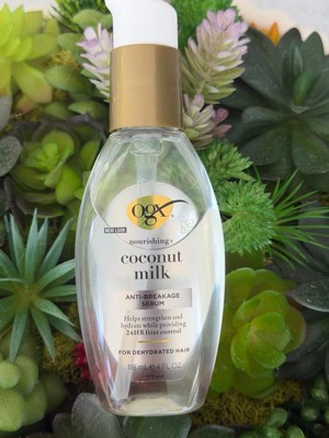 OGX coconut milk is great addiction to any hair care routine it’s has a rich tropical scent that feel fresh but not over powering the texture it’s lightweight and absorb well into the hair without living greasy help hydrate and smooth dry or frizzy hair