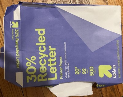 Recycled Printer Paper Letter Size 20lb 500ct White - up&up™: 30% Recycled, 8.5x11 Inches, 92 Brightness, 500 Sheets