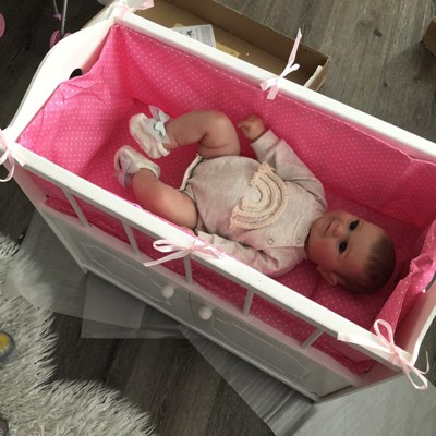 Badger Basket Storage Doll Crib with Bedding and Free Personalization Kit - White