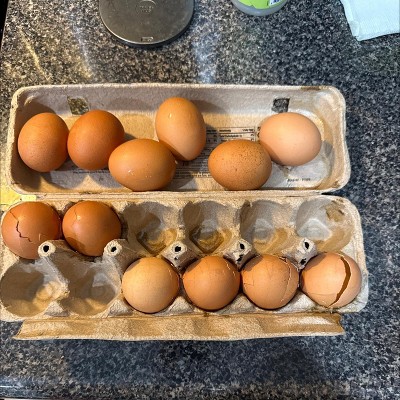 first I want to thank the shoppers for their care of picking out the eggs.. definitely not an easy task.. I haven't bought eggs for quite awhile I have a few chickens they usually keep up lol..but decided to moult so no eggs for awhile... I was actually pleased with these eggs and will buy them again the eggs are just a touch smaller than my ladies eggs but definitely not a deal breaker...