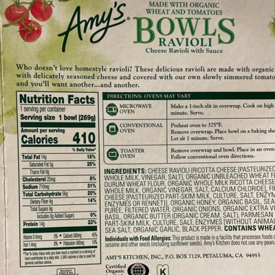 Amy's Frozen Cheese Ravioli with Sauce Bowl - 9.5oz