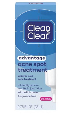 Clean & Clear Advantage Acne Spot Treatment Gel Cream with Salicylic Acid and Witch Hazel - .75 fl oz: For Face, Forehead, Nose, Neck, Jaw Line
