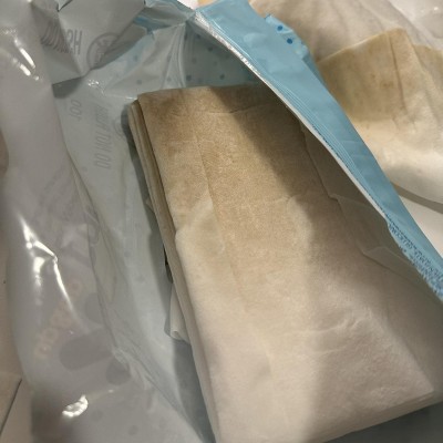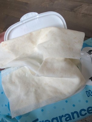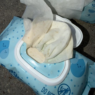 Last box we purchased 4 of the packs were discolored/moldy. We normally really like these wipes but this last box had four packs that had weird yellowish brown discoloration which made us believe it was mold. We had to toss out 400 wipes since each pack is 100. We noticed the first one but not until halfway through the pack. The second one tossed immediately and after the 3rd we opened the rest to check and thats when discovered 4 in total were a total waste. normally we would recommend thus product but not after this quality control issue.
