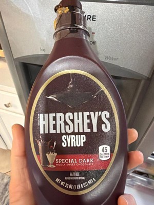 HERSHEY'S SPECIAL DARK chocolate syrup is full of the genuine, mildly sweet chocolate flavor you know and love. Enjoy the mildly sweet taste of chocolate syrup on everything from cakes to cookies. It is the perfect syrup to add to your milk, hot cocoa and coffee. Try drizzling it over your brownies and cakes, or use it to make chocolate floats and sundaes. No matter what you're making or who is at your gathering, pop open the lid and squeeze, swirl, dot or drizzle the syrup onto some of your favorite drinks and desserts. Squeeze the syrup onto your ice cream sundaes as a tasty topping or stir it into a cold glass of milk for a classic glass of chocolate milk. The syrup is also a great way to add a little sweetness to your morning coffee. HERSHEY'S SPECIAL DARK chocolate syrup is great to have on hand for every holiday so that you're always ready to create delicious treats and recipes for the entire family. This chocolate syrup is fat free and has no artificial colors. It comes packaged in a closeable and squeezable syrup bottle for easy pouring. Once you're finished, place the bottle in the refrigerator.