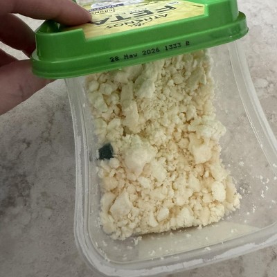Received yet another container of this item with a large and open crack in the plastic exposing the feta cheese to air, dirt, bacteria etc. I’ve probably experienced this 6 times in the past 3 years. I was given the third degree by Target guest relations and spent 15 minutes and was transferred three times to receive a $3.99 refund for their own poor handling of products. I have had it with Target.