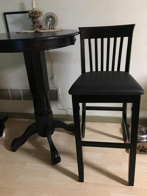 COMFORTABLE SEATING: Designed with comfort in mind, this barstool includes a padded seat and a gently curved mission style backrest. The seat is upholstered in easy-care black faux leather, providing support for your back while ensuring long-lasting comfort, whether you're sitting for a quick meal or a longer gathering with friends.