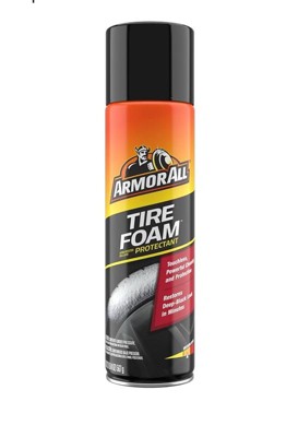 This tire foam protectant by armor all is a great product it goes on foam and then with a quick swipe with a towel your tire is looking shiny and brand new very easy to use clean up is quick and leaves your tires looking brand new