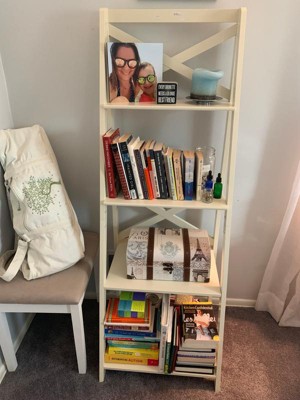 Buylateral 4 Tier 56" Crossback Ladder Bookshelf Black: Sturdy MDF Composite Storage