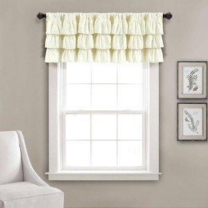 I love this valance. The width was perfect for my window and the ruffle look is so pretty. However; I ordered the ivory and was so disappointed. The ivory is far too yellow. I hung it hoping it would appear ivory on the window, but still too yellow. I returned it and ended up ordering the white because I do love the valance. Just a heads up if you are looking for an off white or cream, the ivory may just be too yellow for you.