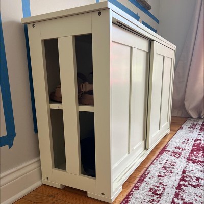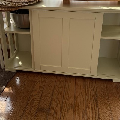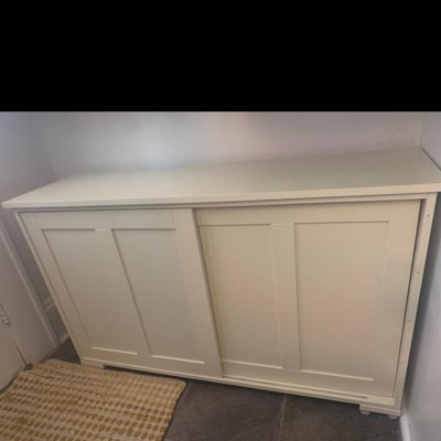 Buylateral Pacific Modular Design Stackable Cabinet with Sliding Doors Off White: Coastal Style, Wood Composite, 2 Adjustable Shelves