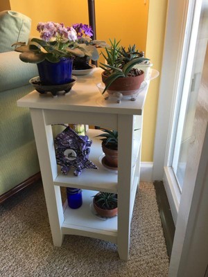 These end tables are just what I was looking for! I bought the white, and they look super cute! They sort of have a country decor feel, but also a clean sophisticated look. I wanted something small for my smaller living room and these did just the trick! It took my hubby a little while to put them together though. :)