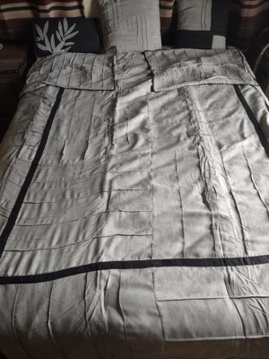 [This review was collected as part of a promotion.] I was tired of the look of our heavyweight comforter. So when I saw this comforter set, I thought it would be a good replacement. This set has a nice contemporary look. I was able to get it in a color very complementary to our bedroom furnishings. I like that the comforter itself is very lightweight and is made of a synthetic material. When the comforter set arrived, all the items were vacuum packed in a surprisingly small box. I followed the enclosed instructions and ran the items in the dryer to fluff up the items. Although, I still needed to iron the all the items to get the worst wrinkles out. Over all I am happy with this comforter set.