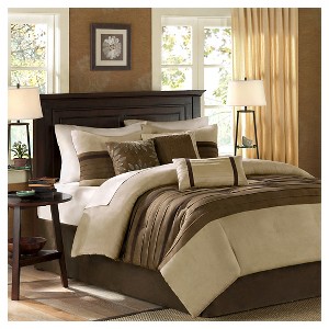 The Dakota 7 Piece Comforter Set offers a classic and refined update to your bedroom decor. This transitional style comforter features a pieced microsuede design in rich contrasting colors to create an incredibly soft look and feel. The 2 matching shams also flaunt a pieced construction to coordinate with the faux suede comforter. A solid bed skirt and 3 decorative pillows with a mix of embroidered designs add the perfect finishing touches to complete this lush traditionally-inspired comforter. Machine washable for easy care, items in the set may come in a rolled or compressed packaging, which will need to be fluffed up or steam ironed before use to remove wrinkles.