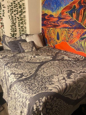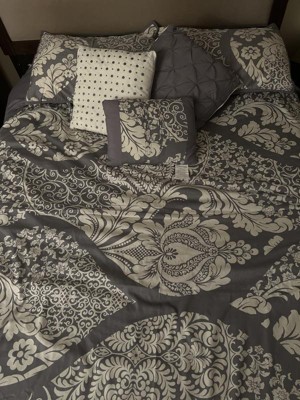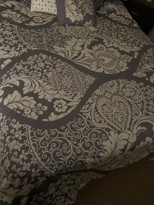 Madison Park 6pc King/California King Adela Printed Duvet Cover Bedding Set Slate: Damask, Embroidered, OEKO-TEX Certified