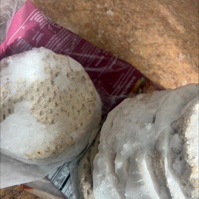 Gray freezer burnt and rott smell not good and it was both packs looking online mine looks exactly like the weird gray frosted stuff in pics