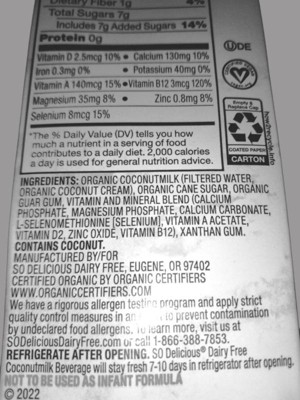 So Delicious Original Dairy-Free USDA Organic Coconut Milk is a fantastic choice for those seeking a plant-based alternative. While the product already boasts USDA Organic certification, it could benefit from removing Calcium Phosphates and Magnesium Phosphates due to potential health concerns. Those ingredients can increase the risk of cardiovascular disease, disrupt calcium metabolism, bone mineralization, and negatively affect kidneys. Swapping Organic Cane Sugar with Date Sugar would be a welcome improvement. Dates and Date Sugar bring natural sweetness with added benefits, including being rich in fiber, antioxidants, and essential minerals. This adjustment would align the product even more closely with health-conscious choices, making it a delicious and wholesome dairy-free option.