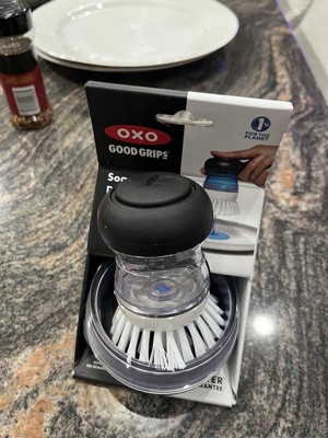 OXO Soap Dispensing Palm Brush Storage Set: Nylon Scrub Brush for Multi-Surface Dish Cleaning, Reusable, Black