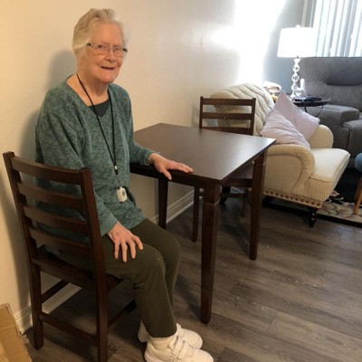 We bought this set for my in-laws, who recently moved to assisted living and needed something small to fit in their apartment. It’s lovely! It is well made, was easy to put together and fits perfectly in their new space. Also great price! Very happy with this table set.