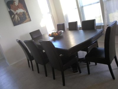 The chairs are comfortable and classy looking but they need to be a little higher to the table. When you sit and the cushion goes down some you need a 1/2 to inch more.