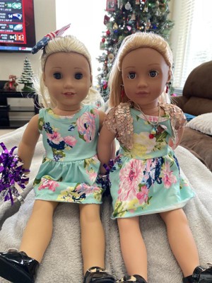 Bought my daughter this Our Generation doll (on right) for Christmas & her friend has an American Girl (on left) doll. We compared them and they are the exact same quality, style, and look. The hair on the Our Generation doll is actually softer than the AGD & my daughter loves that she can put earrings in her dolls ears. The AGD has her teeth showing. Both have eyes that open & close, soft bodies, and moveable arms. Both have enough hair sewn into the scalp that you can put their hair up without holes showing through. They have already dressed them up in clothes they’ve gotten separately, hence the different outfit than what’s shown in ad. All around super happy with this purchase.