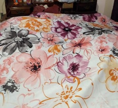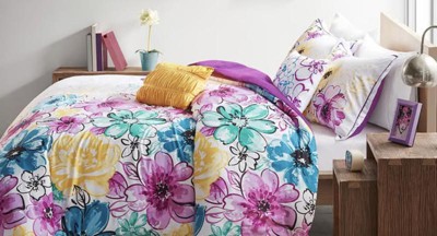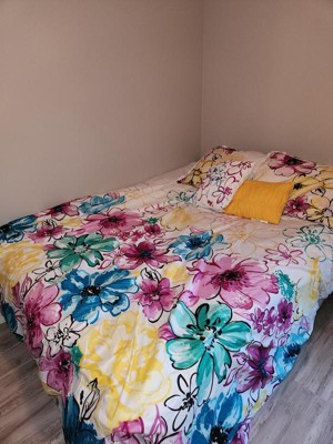 [This review was collected as part of a promotion.] I love this comforter set! The colors are bright against the white background, which in turn brightens up my room a lot. The flowers have a watercolor feel to them and the color combination is vibrant and stands out. It's a little wrinkly when you take it out of the package, so you might tumble it in the dryer on a low heat for a bit. The throw pillows are also so cute! My one complaint is that the set doesn't include matching sheets. Other than that, I love it!