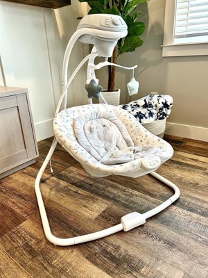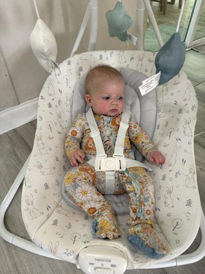 [This review was collected as part of a promotion.] This swing is simple yet perfect. The pattern is gender neutral and so SO cute! I was worried about how loud it would be but it’s fairly quiet. We use this for our newborn while putting our five year old to bed in the same room and it doesn’t wake him. The fabric material is close to a neoprene feel and is easily wipeable but can always be fully removed to deep clean. Thanks to the Stellar Product Testing Panel for providing me with this infant swing.