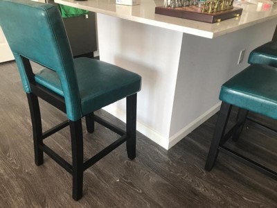 Linon 24" Vega Padded Back and Seat Faux Leather Counter Height Barstool Hardwood Blue: Upholstered, Stained Finish, Foam Fill