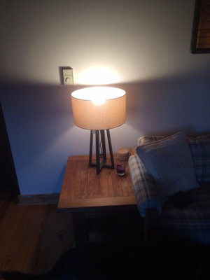 Influenced by vintage and rustic traditions, the Quinn table lamp combines the texture of natural linen and the sleek warmth of a walnut finish on the crisscross base for a contemporary statement. The brown fabric cord adds to the vintage appeal. The 3-way rotary socket switch will only work with a 3-way light bulb, otherwise this lamp will function with simple on/off switch at its highest setting. This table lamp is smart outlet compatible. Bulb is not included.