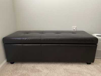 Clutter and junk everywhere. What you need is a well made storage solution that is both functional and beautiful. The Cambridge Large Rectangular Storage Ottoman Bench is durable, strong and sturdy. It features a beautiful tufted exterior, lift up lid and large storage interior. Whether you use this ottoman in your entryway, living room, family room, basement or bedroom, it will allow you to hide away all that mess.