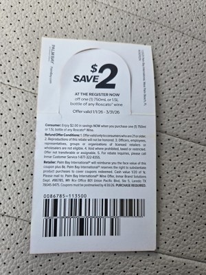 Target had this item on sale for $1 off. In addition there was a vendor coupon for $2 off which specifically said on it "take this to register now". Upon going to register the team mem ber carded me ( I am 73-so happy he thought I was under 21). Then he said I could not use the $2 coupon since the wine was on sale for $1 off. I asked about using the income in lieu of the current $1 off. Team member denied. He said to bring back another time if it was not on sale. This was at the Spring Hill Fl Target. Why don't I shop at Target? It really was false advertising. Not a great company image and now have lost a customer over $1.