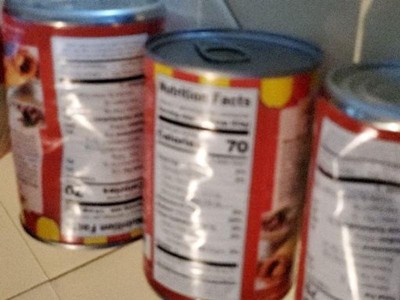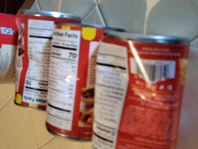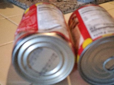 All 3 cans are bent pretty bad. One can not too much. Two cans are ridiculous