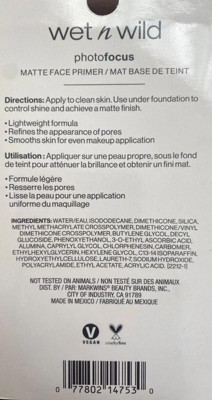 Wet n Wild Photofocus Matte Face Primer - 0.84 fl oz: Smoothing, Translucent, For Oily, Combination, Sensitive Skin